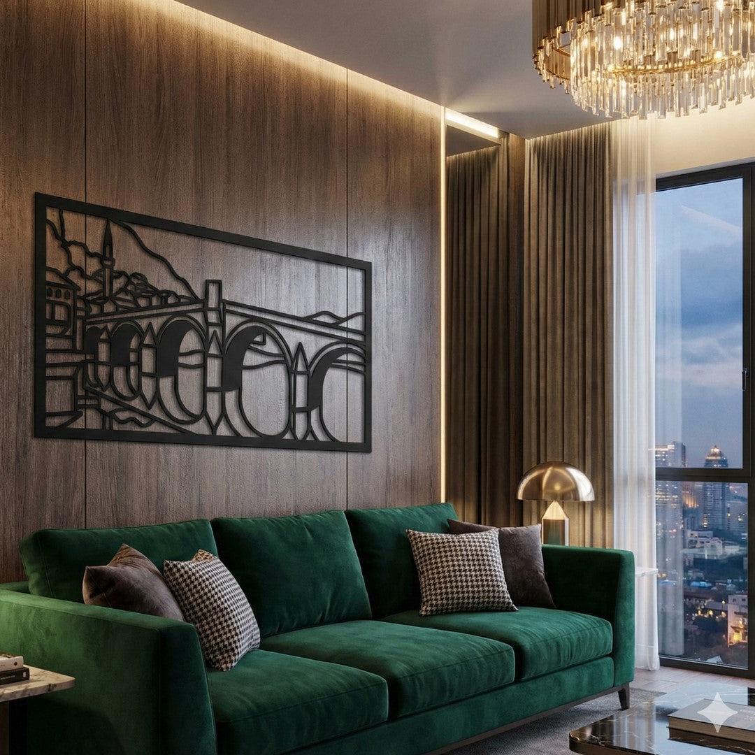 Gdje se spajaju obale i historija." 🌉🌊 Stara ćuprija u Konjicu, sa svojih šest lukova koji se ogledaju u smaragdnoj Neretvi, jedan je od najdragocjenijih simbola Bosne i Hercegovine. Ova unikatna metalna dekoracija donosi bezvremensku ljepotu konjičkog bisera na vaš zid, stvarajući atmosferu elegancije i ponosa u svakom prostoru.