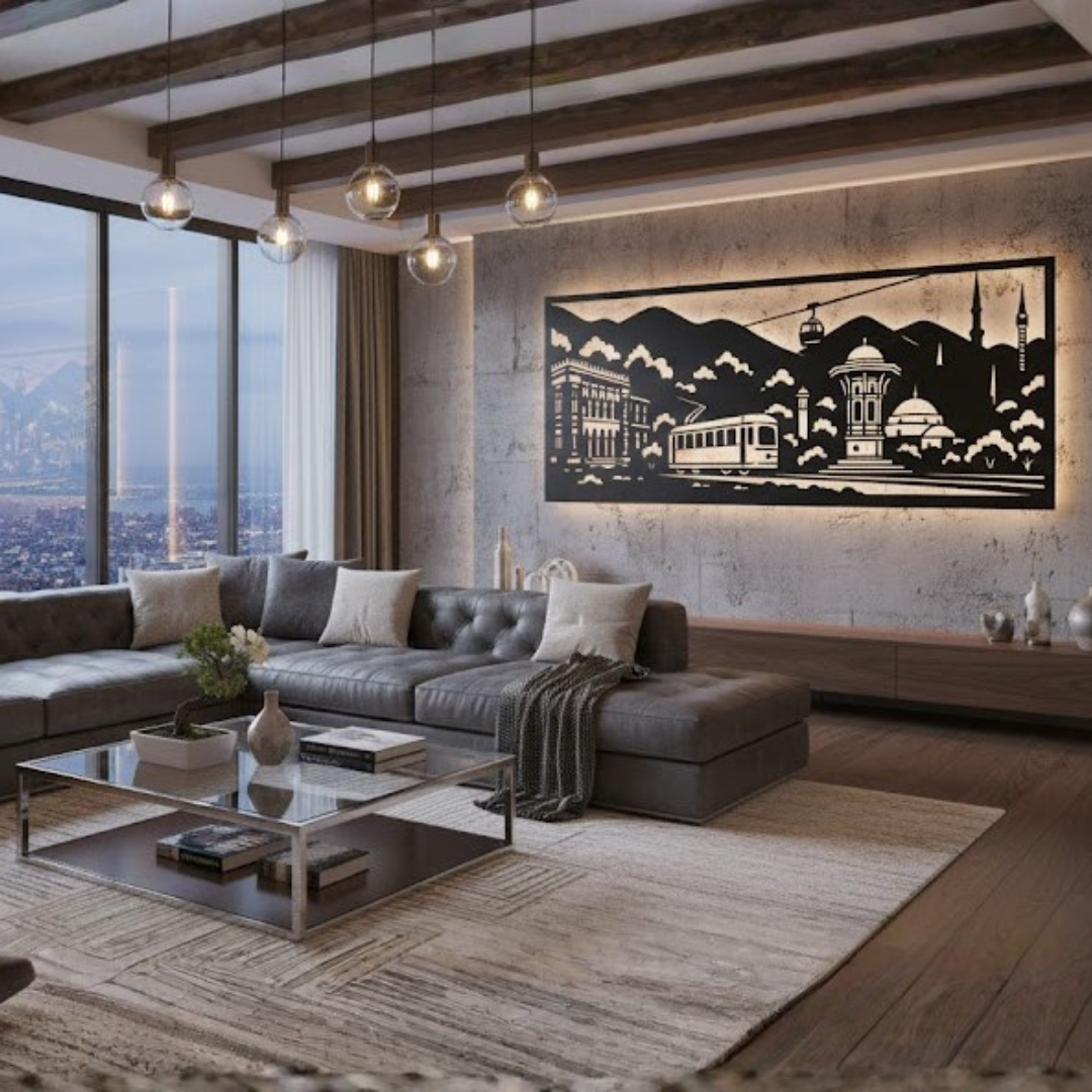 Sve uspomene na šeher u jednom pogledu. Ova impresivna metalna panorama donosi najprepoznatljivije simbole Sarajeva – od Vijećnice i kultnog tramvaja, preko Sebilja, pa sve do žičare koja spaja grad sa Trebevićem. Unikatni komad koji pretvara vaš dnevni boravak u galeriju posvećenu duši Sarajeva.