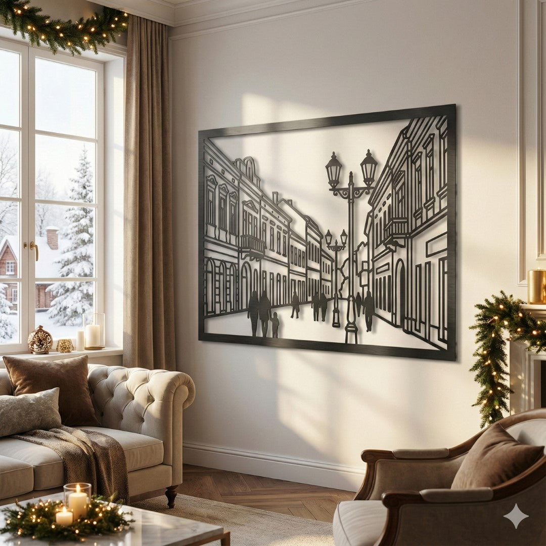 Šetnja kroz srce Banja Luke, svakog dana u vašem domu." 🌳🏢 Gospodska ulica je više od šetališta; ona je simbol elegancije, susreta i najljepših banjalučkih priča. Ova unikatna metalna dekoracija precizno prikazuje raskošnu arhitekturu i prepoznatljive kandelabre, pretvarajući vaš zid u galeriju posvećenu gradu zelenila.