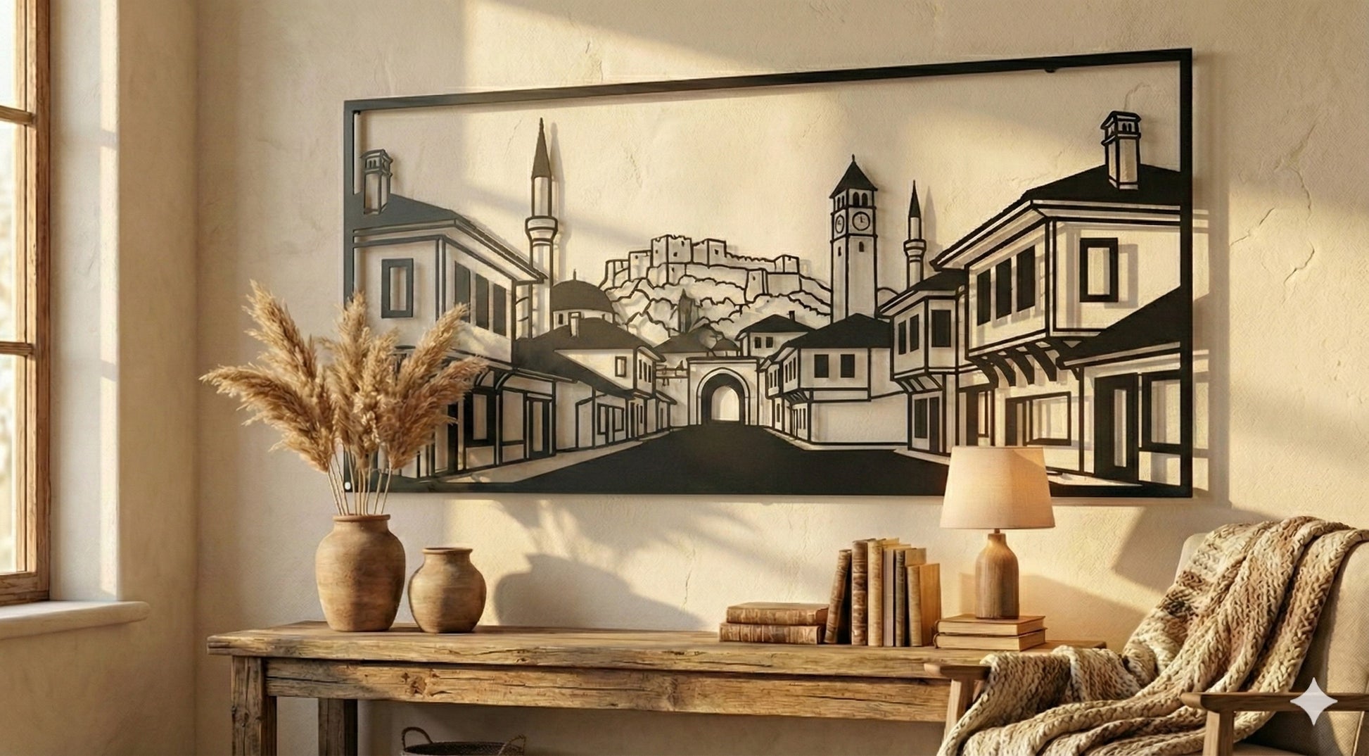 Tamo gdje historija piše najljepše priče." 🏰🏔️ Travnik, grad vezira i nobelovaca, sada može krasiti vaš dom u obliku vrhunske metalne panorame. Ovaj detaljni prikaz Starog grada, prepoznatljivih travničkih mahala i sahat-kule donosi atmosferu tradicije i dostojanstva u svaki enterijer. Unikatan komad za sve ljubitelje bosanskohercegovačke baštine.